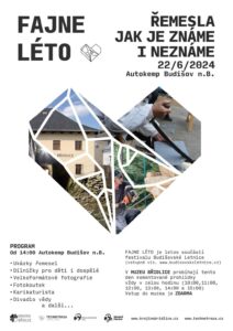 Akci FAJNÉ LÉTO jsme realizovali opět v rámci festivalu Budišovské Letnice – představili jsme různá řemesla, v čele s rychlořezbáři, do doplňkového programu jsme zařadili obří deskové hry, nafukovací atrakce, ale také např. Podivuhodné hry Jiřího Šebesty. Po celé odpoledne byly návštěvníkům k dispozici tvořivé dílničky, ale také například šperkařská dílna, zdobení perníčků nebo výstava velkoformátových fotografií, která nám tentokrát přiblížila Libavsko – část Krajiny břidlice, která nám není zcela přístupná.