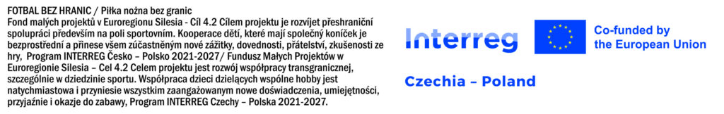 Projekt je spolufinancován Evropským fondem pro regionální rozvoj v rámci programu Interreg Česká republika-Polsko v období 2021-2027 z Fondu malých projektů v euroregionu Slezsko – Cíl 4.2 – Prohloubení přeshraničních vazeb obyvatel a institucí česko-polského pohraničí. / Projekt jest współfinansowany ze środków Europejskiego Funduszu Rozwoju Regionalnego w ramach Programu Interreg Czechy-Polska w okresie 2021-2027 z Funduszu Małych Projektów w Euroregionie Silesia – Cel 4.2 – Pogłębianie więzi transgranicznych mieszkańców i instytucji pogranicza czesko-polskiego.